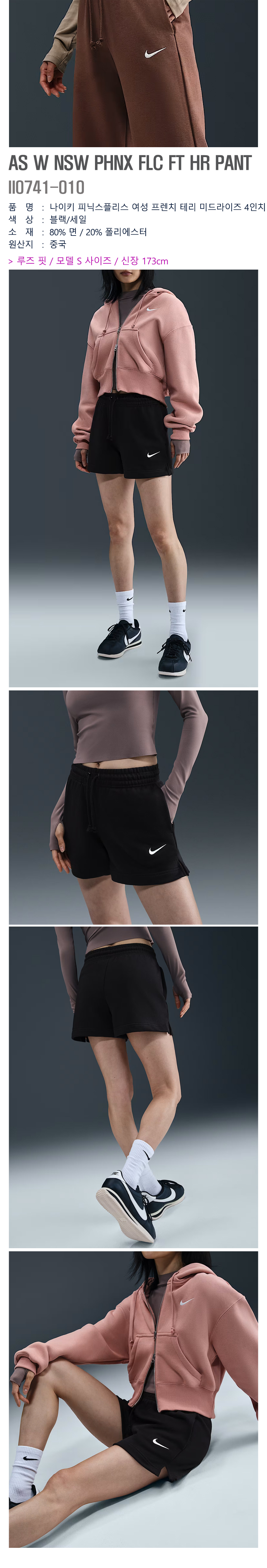 나이키/여성반바지/W 피닉스플리스 4IN (II0741-010)