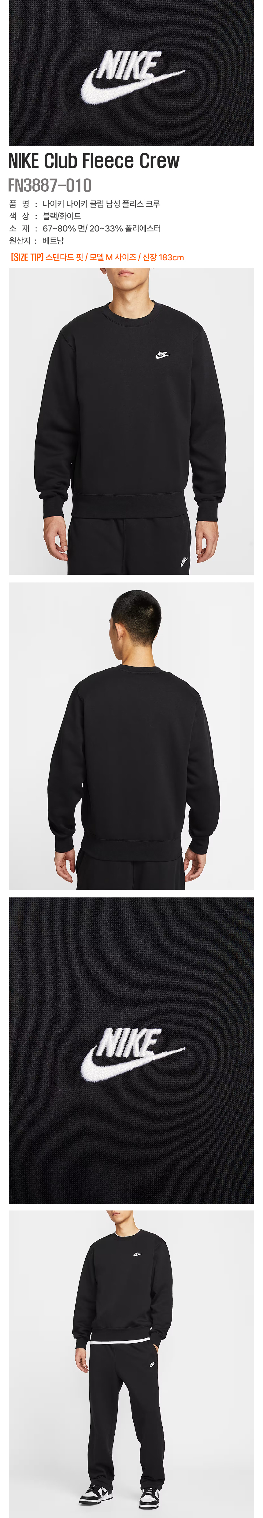 나이키/남성긴팔/클럽 플리스 크루 (FN3887-010)/EV