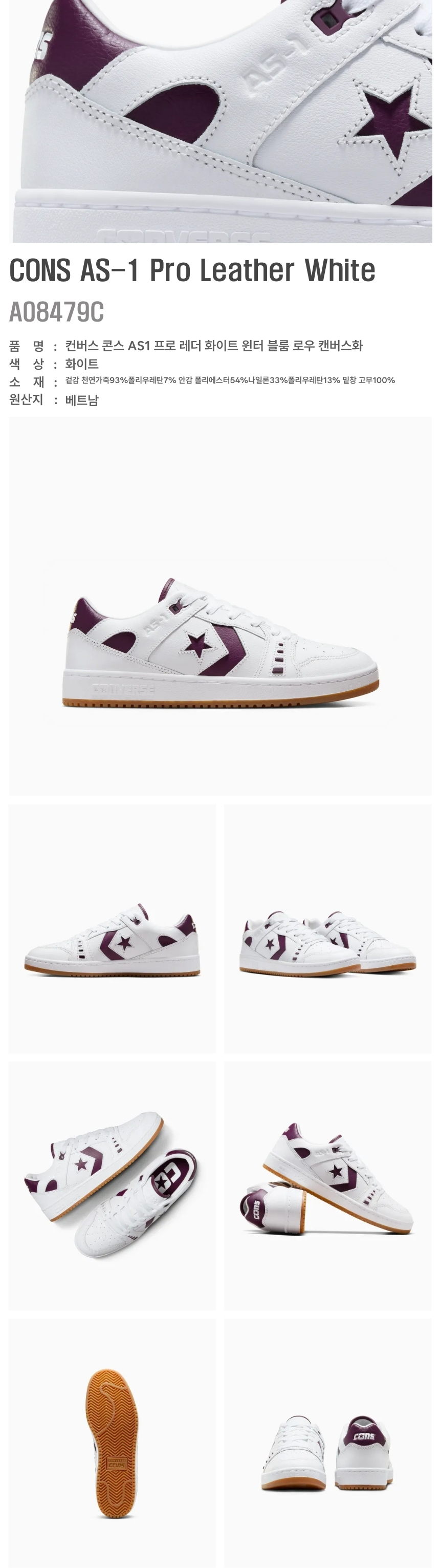 컨버스/공용/콘스 AS1 프로 레더 화이트 윈터 블룸 로우 캔버스화(A08479C)/EV