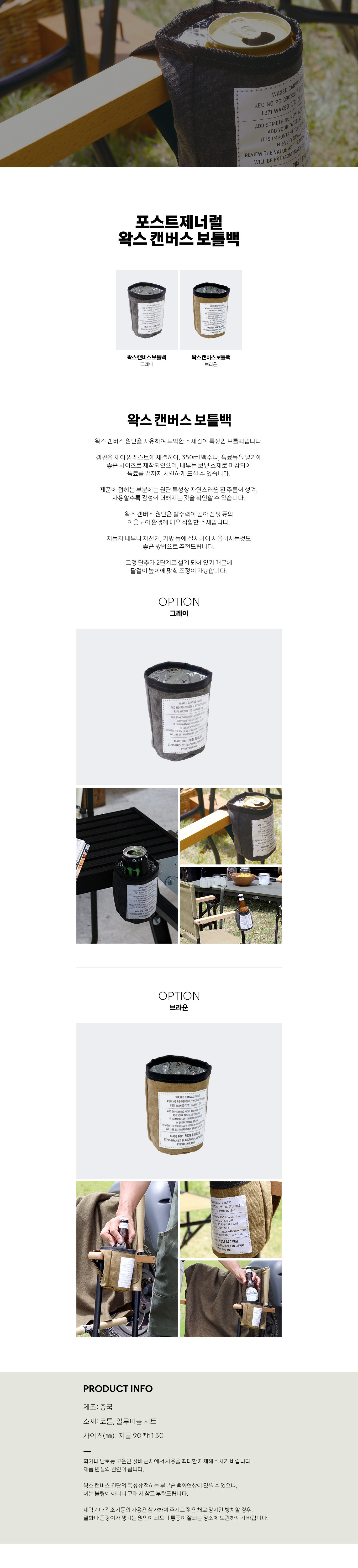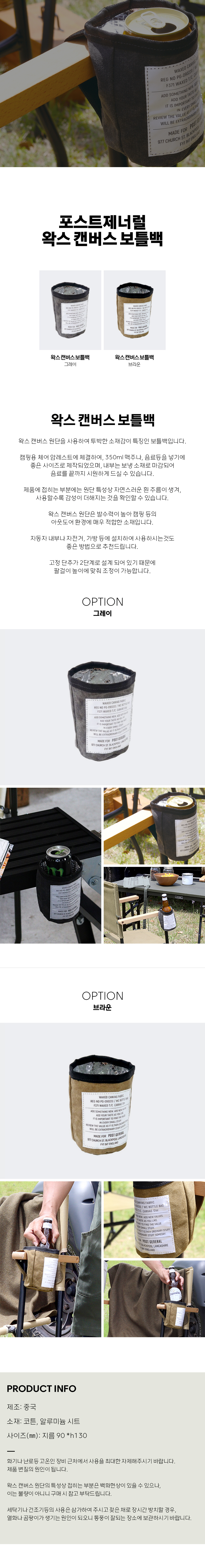 왁스 캔버스 원단을 사용하여 투박한 소재감이 특징인 보틀백입니다.