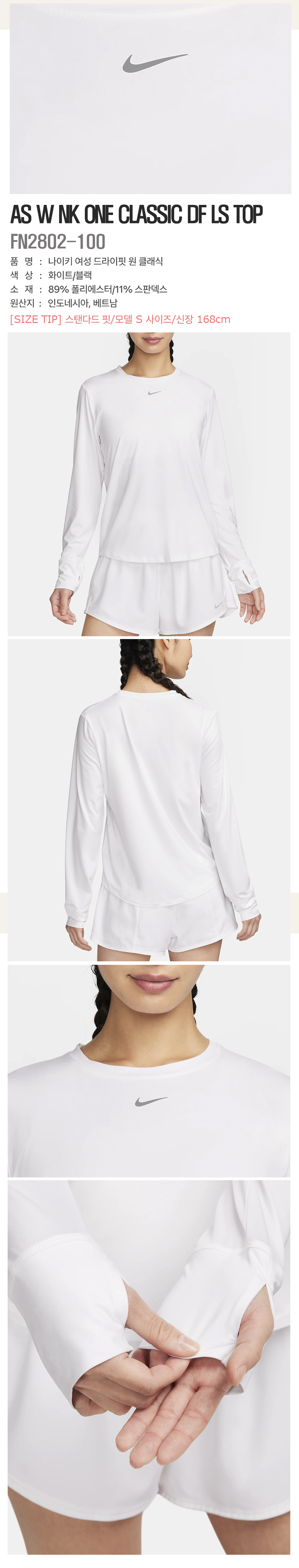 나이키/여성긴팔/W DF 원 클래식(FN2802-100)/EV
