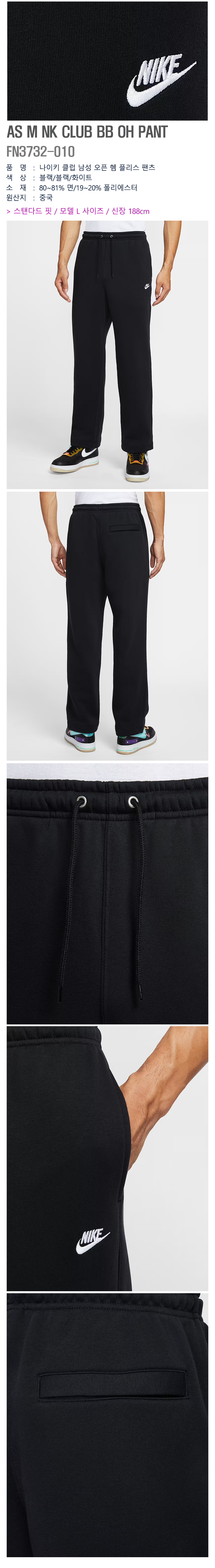 나이키/남성긴바지/클럽 남성 오픈 헴 플리스 팬츠(FN3732-010)/EV